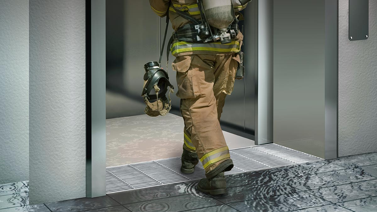 Recently inspectors in San Francisco have become more stringent in enforcing a code that has been on the books for a while now. It is a code that many municipalities have, which requires a trench drain that can accommodate a 100 GPM flow rate be placed at all Fire Service Access Elevators (FSAE) lobby door openings.