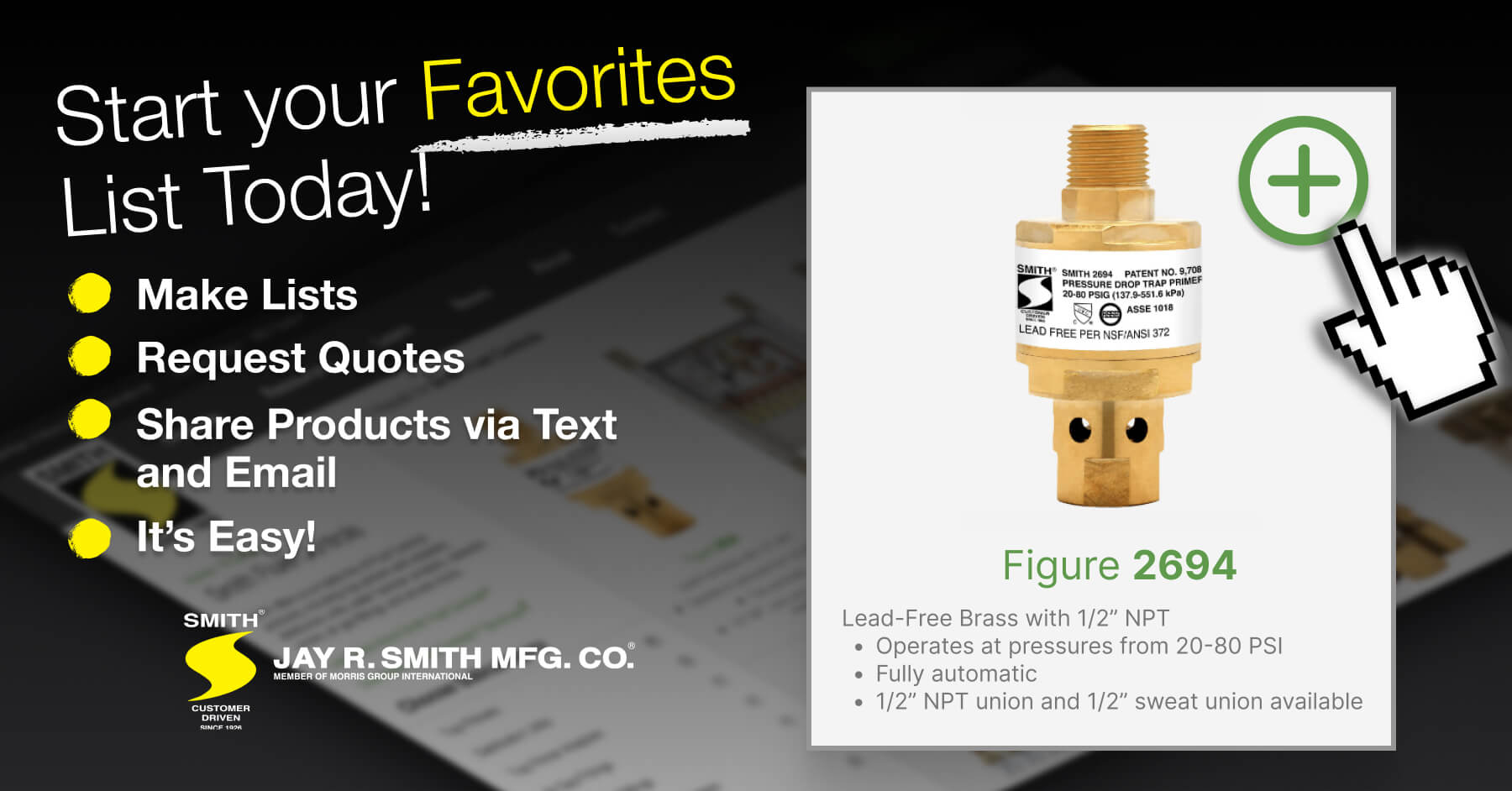 A new Favorites feature is available today on the Jay R. Smith Mfg. Co.® website. Favorites allows you to curate your own custom library of products.