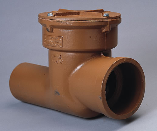 These corrosion resistant Duco coated cast iron sewer backwater valves protect basements and other low areas against wastewater back flow from street sewers. Two cleanout cover options are available, one bolted and one threaded. They fully open to permit easy access to the bronze valve assembly for cleaning or maintenance.