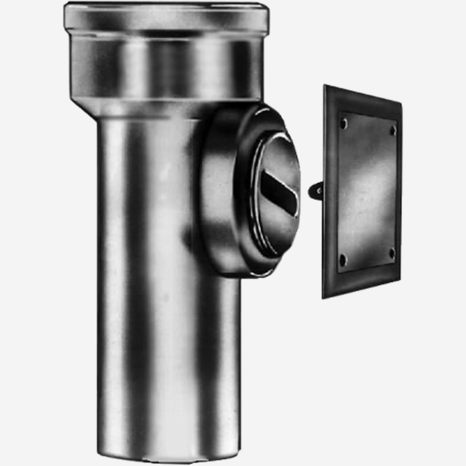 This Duco coated cast iron cleanout tee is designed for installation in concealed drainage lines where a cleanout is desired. Its exposed cast iron plug can be covered with one of two square nickel plated bronze frames. A face-of-wall cover is designed for installation in tile, masonry, or dry wall construction. The flush-with-wall frame and cover is intended for installation in plaster or wet wall construction and is installed as the wall is constructed. Both are fitted with anchoring lugs that secure the frame to the wall.