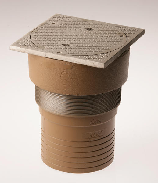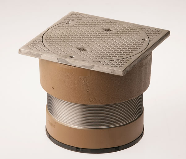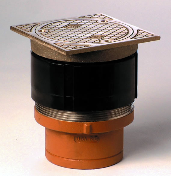 This labor saving cleanout uses our Twis-to-Floor® adjustment technology to level the top with adjacent surfaces after the floor is poured and floor coverings are installed. Its 6” (150) square nickel bronze top is particularly suited for installation in flooring materials having straight line patterns. Constructed of Duco coated cast iron, this cleanout is designed to support foot and medium load wheeled traffic.