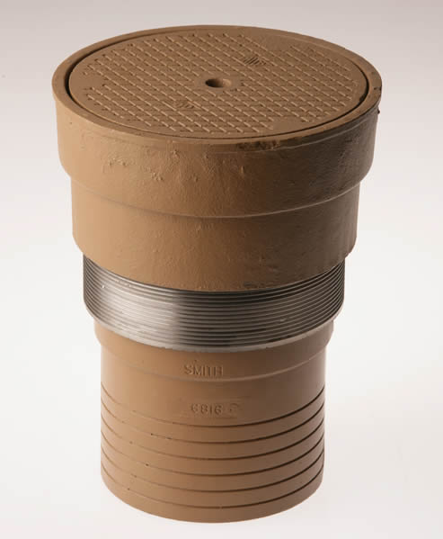 Unfinished Floor Cleanouts with Adjustable Round Cast Iron Tractor Cover Tops