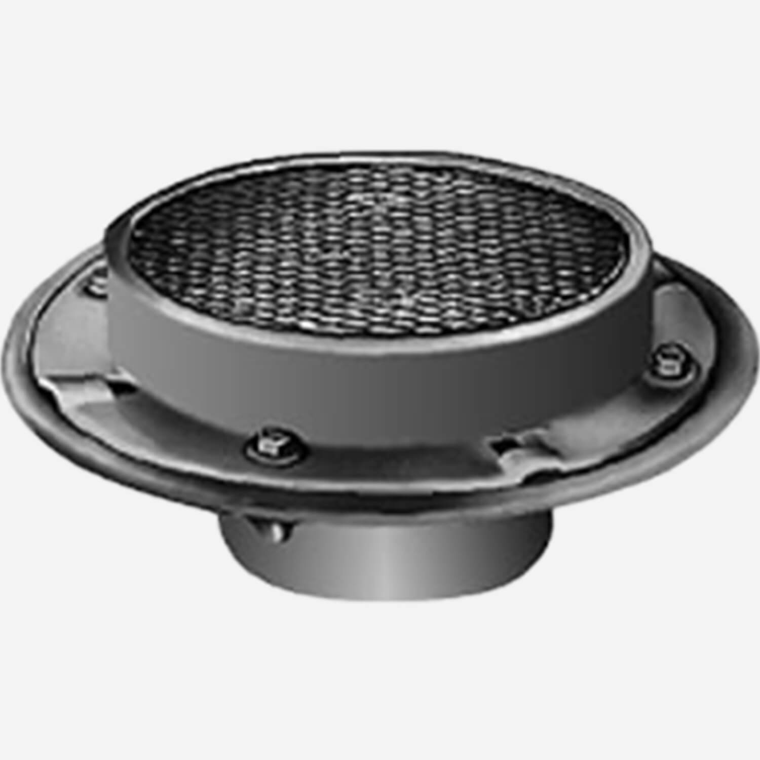 These Duco coated cast iron unfinished floor cleanouts are installed in areas where their large 8-1/2” (215) access cover is desirable and the appearance of cast iron is satisfactory. They are available with a cast iron medium duty (fig. 4333) cover or non-tilt heavy duty (fig. 4338) cover. They are fitted with a bronze taper thread closure plug and flashing collar.