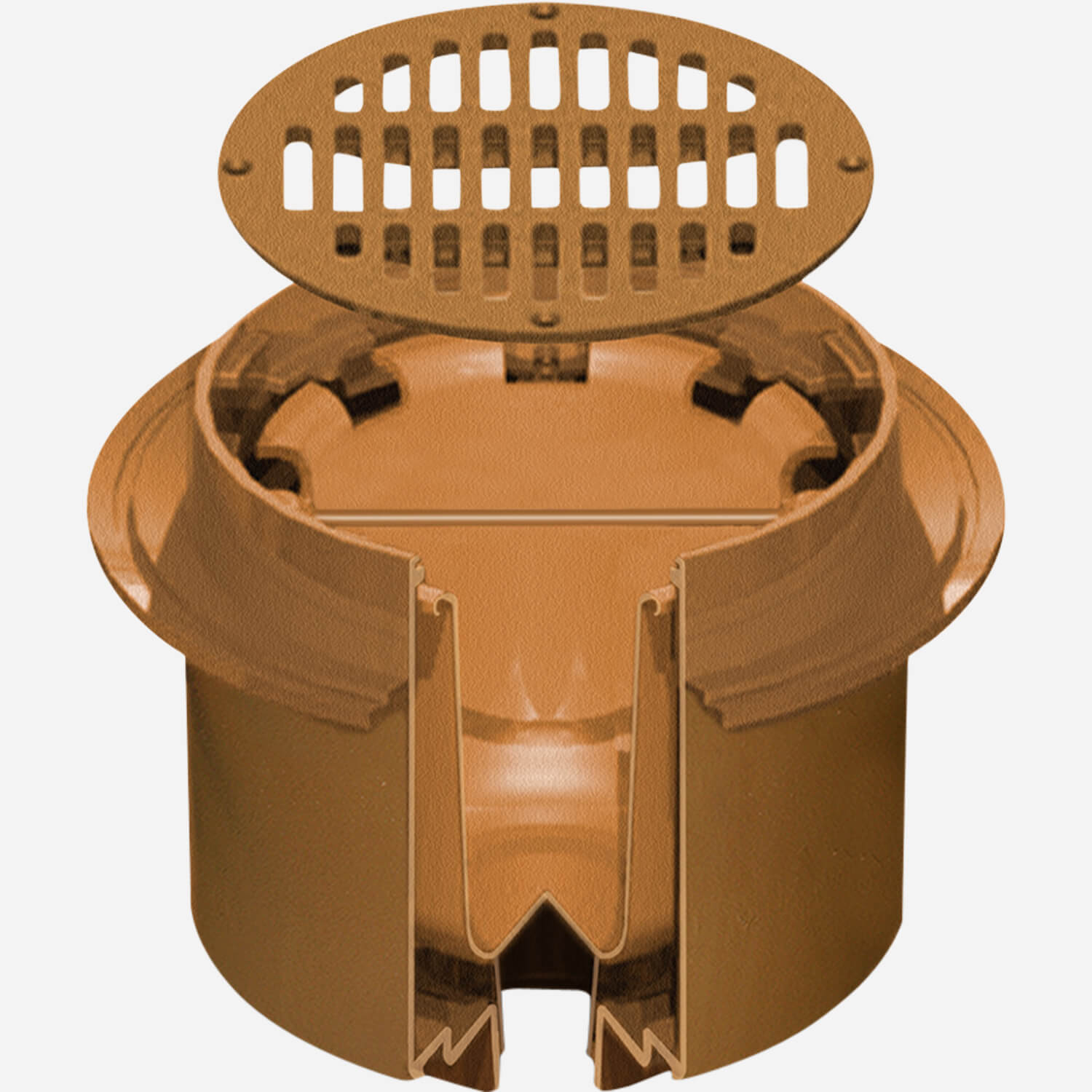 This deep body, 12" diam. medium duty floor drains is engineered for general use in areas where heavy runoff with considerable debris is anticipated. Designed with a large, solid, free-standing sediment bucket, this Duco cast iron drain is easily maintained. It is supplied with a cast iron grate with nickel bronze and polished bronze grates available.