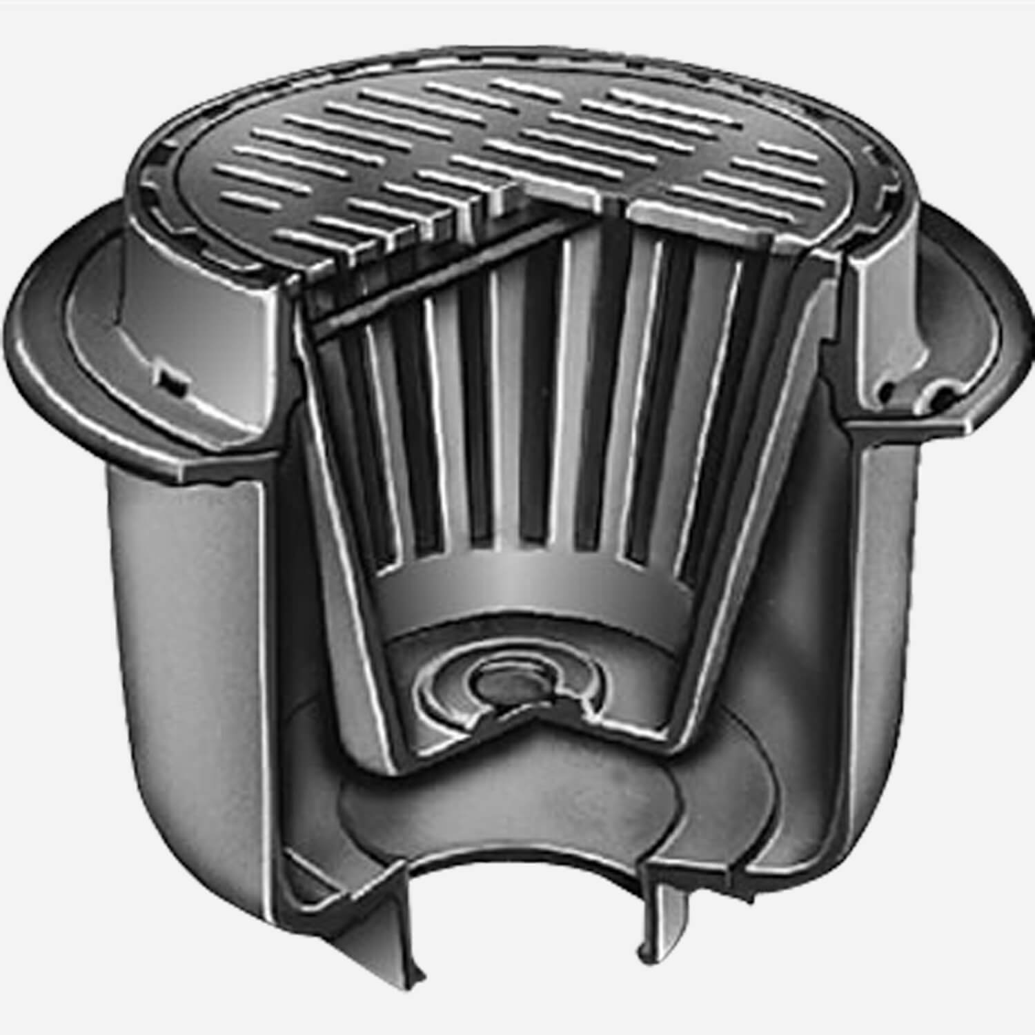 Engineered to guarantee proper realignment of its large sediment bucket after emptying, the Safe-Set® design of this deep-body floor drain protects drainage systems where heavy flow and considerable debris is anticipated. This medium duty floor drain and grate is made of Duco cast iron for static loads up to 4,999 lbs. (2,2500 kg.).