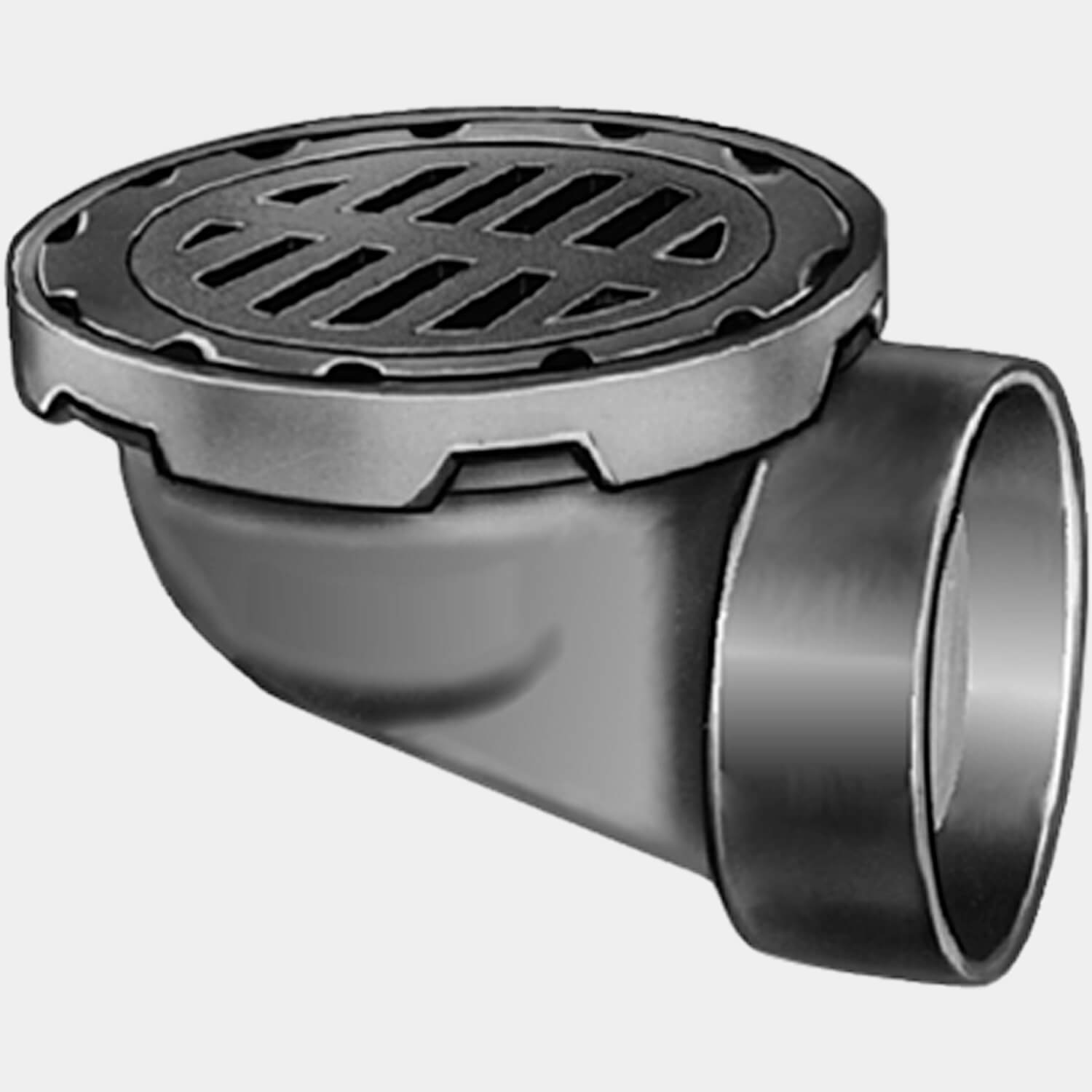 Designed to facilitate emptying in moderate-flow areas where wastewater debris must not enter the drainage system, the Safe-Set® design of this 8.5" diam. floor drain ensures proper realignment of the slotted sediment bucket once clean. This medium duty floor drain and grate is made of Duco cast iron for static loads up to 2,000 lbs. (900 kg.).