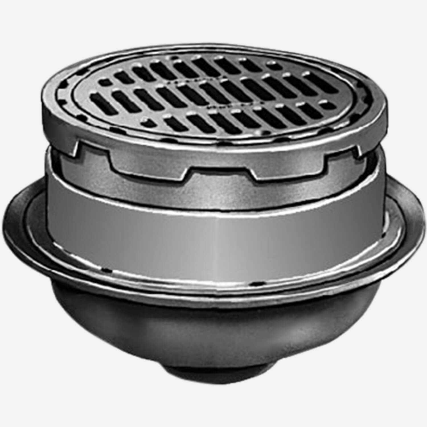 Medium Duty Floor Drains with 12" Adjustable Round Tops and Sediment Bucket
