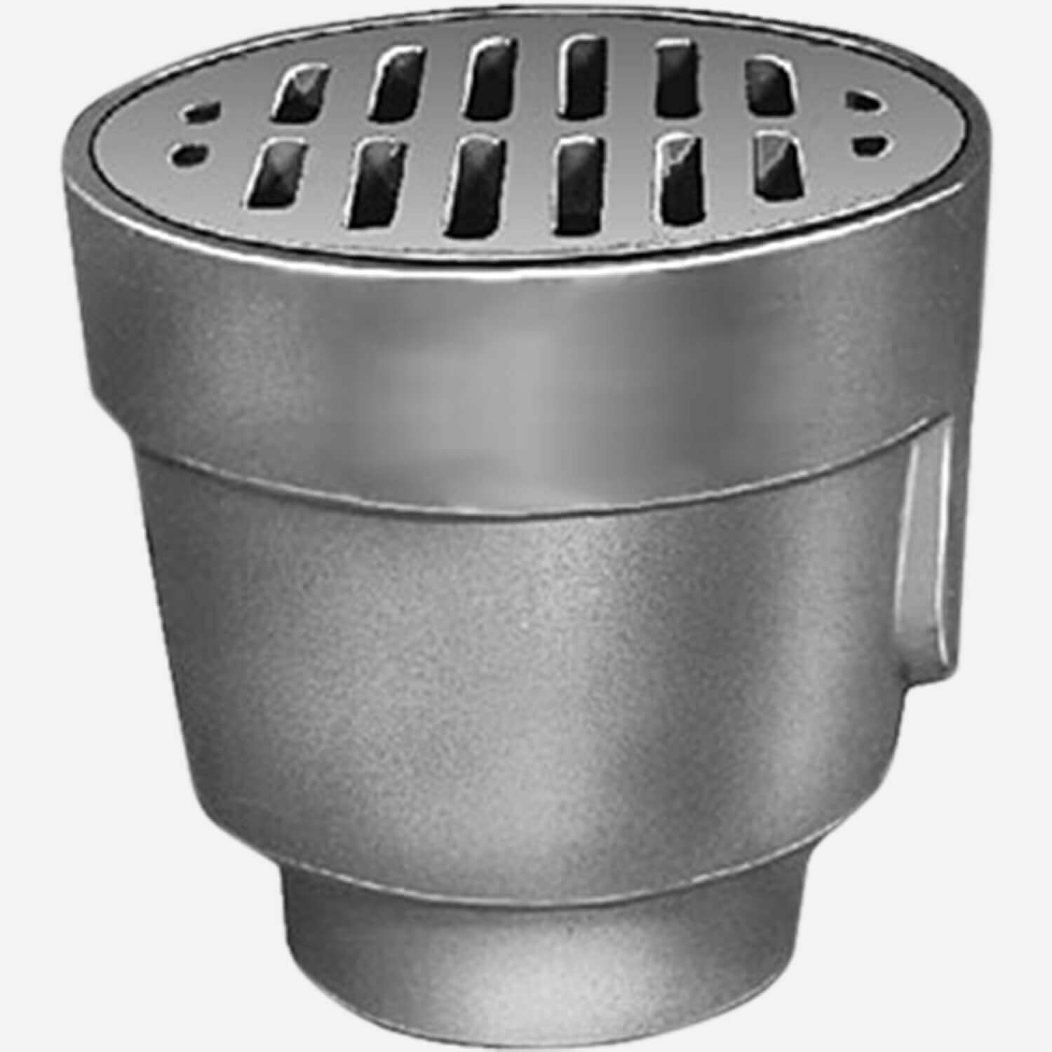 Figure 2490 is available in Duco-coated cast iron. This floor drain accepts 8-1/2" diameter cast iron strainers and is engineered to support heavy-duty "tractor" traffic and Safe Live Static loads between  5,000 lbs. (2,250 kg) and 7,499 lbs (3,375 kg) per ASME A112.6.3 Floor Drain Standard. For use when floor construction requires a deep drain body. Also available with a flange/collar (Figure 2495).