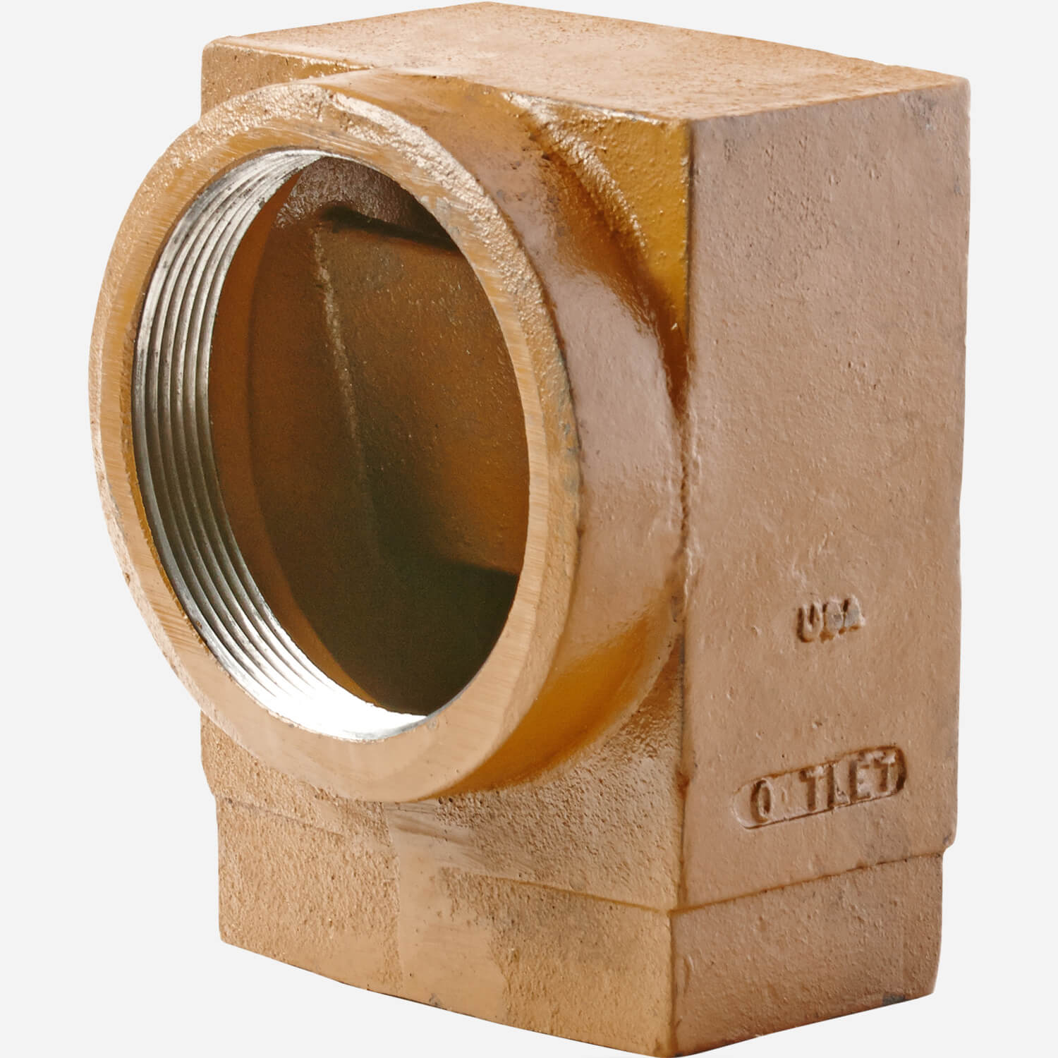This corrosion resistant Duco coated cast iron Downspout Adaptor is used to connect 90° side outlet scupper drains (figs 1510, 1580, 1585) installed at the junction of roof and sidewall to outside downspouts.