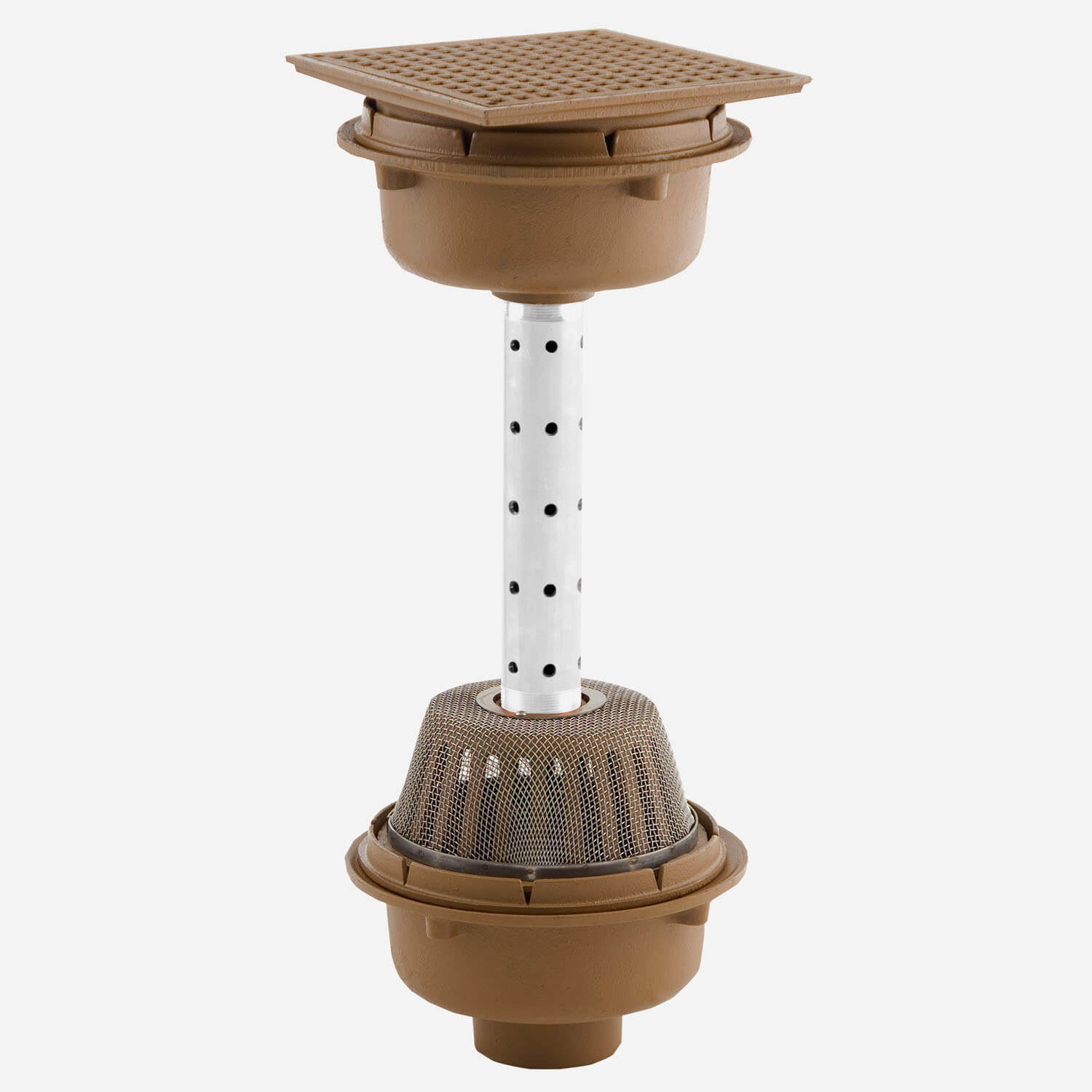 | Optional Materials | Galvanized Cast Iron -G, Upper Drain as Specified., Stainless Steel Mesh Screen over Perforated Standpipe., Ductile Iron Grate - M, Nickel Bronze Top - NB, Polished Bronze Top - PB, Stainless Steel Standpipe -SSP, 4" Dia Stainless Steel Standpipe -SSP4 |