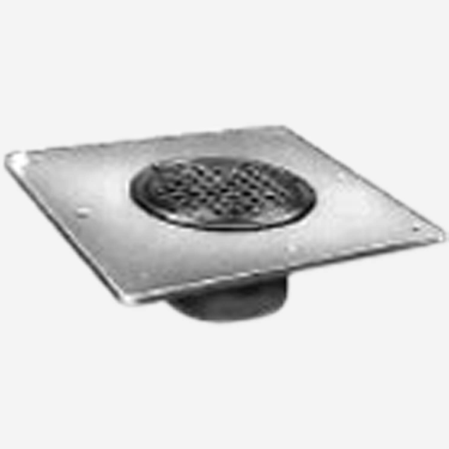 Engineered for wood or concrete deck installation where waterproof finished decking is installed, this 7 3/4" diam. general purpose floor drain has a 14-1/4" sq. flange that provides a large surface for bonding with waterproofing membranes. A tough, 6-1/2" nickel bronze tractor grate is secured with screws to the drains body and supports heavy traffic.
