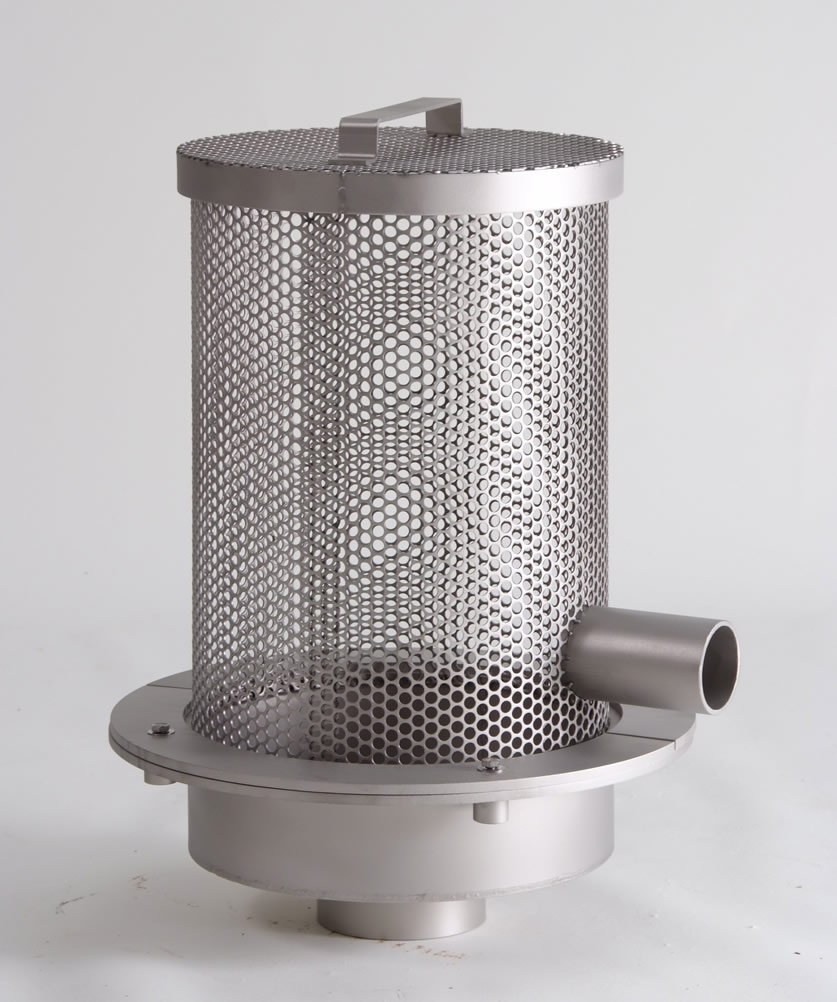 Engineered for planting areas in green roof systems, this 15 1/4" diameter duco cast iron drain is protected by a 12" tall perforated, stainless steel gravel stop capped by a removable cover that allows easy inspection and cleanout. An auxiliary inlet extends from the side of the gravel stop enabling easy connection to additional drains.