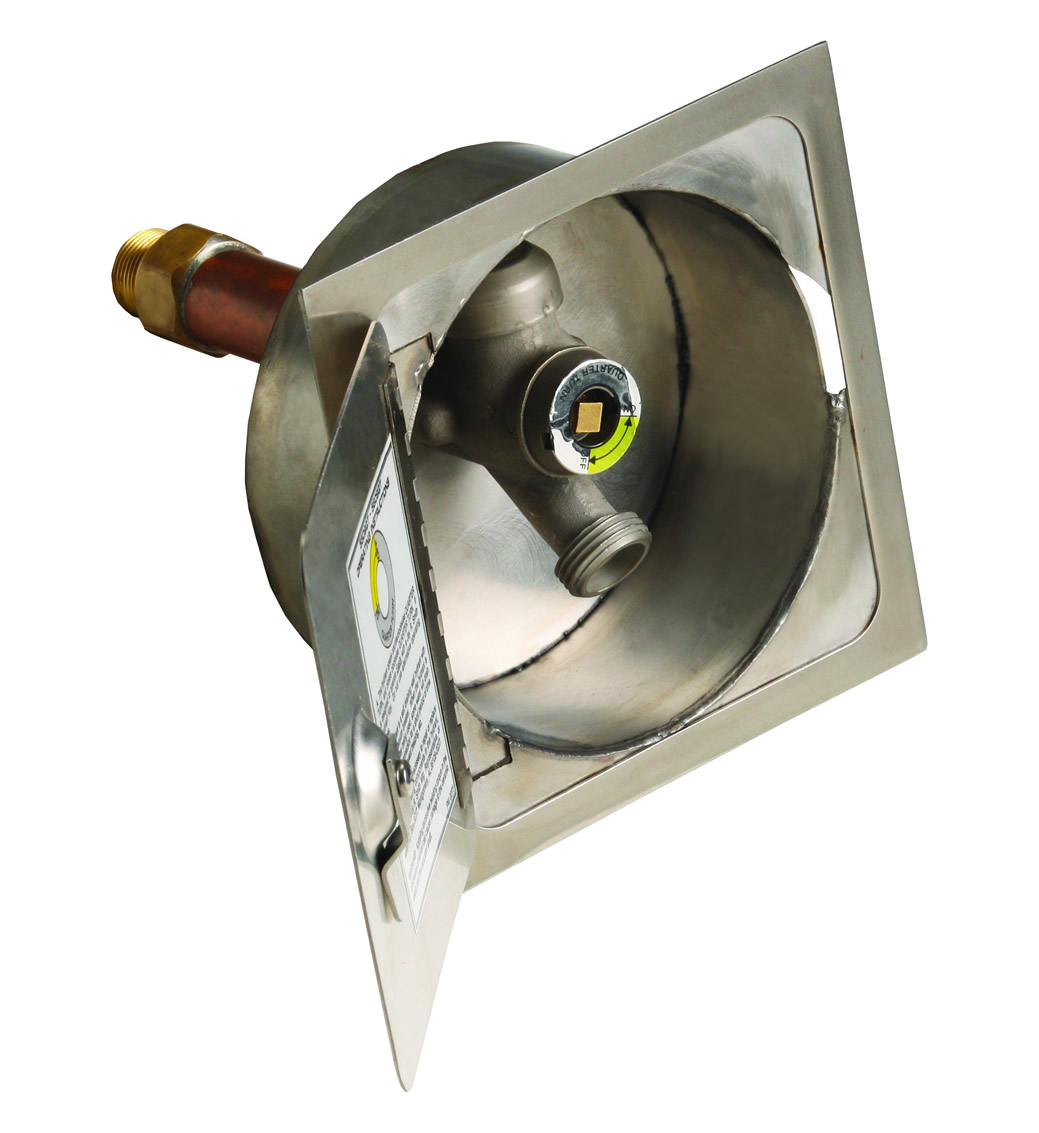 Specifically designed with tilt-up concrete buildings in mind, this hydrant box will cut your wall hydrant installation labor time by at least 75 percent. Once your walls are in place, you simply core drill a six-inch hole in the wall and slide the hydrant box right in. The stainless steel recessed hydrant box conceals the nozzle and operating mechanism of hydrant. The locking cover prevents unauthorized use.
