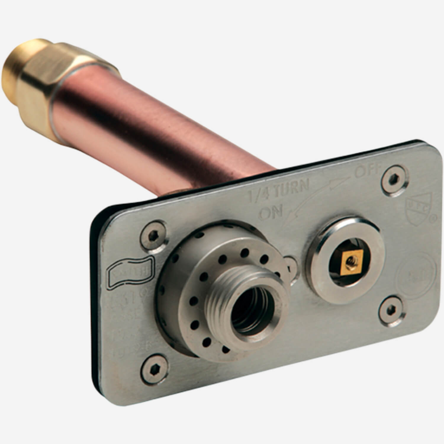 Our Bronze Guardian Dual Check hydrant has an exposed, corrosion-resistant, stainless steel face housing its 3/4" hose connection and tamper proof valve that takes an easy quarter turn of its removable key to open fully. Fitting flush with the brick façade, this labor saving device fits in the space of a standard brick cutting installation costs. Its self draining valve stem, available in 4" to 24" lengths for freeze proof installation in walls of almost any thickness, keeps drinking water from contamination with its integral vacuum breaker and dual check valve.