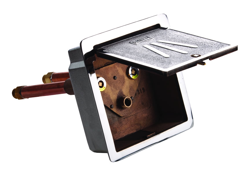 This tamper proof hydrant is designed for installation in food handling areas, dairies and other exterior walls where both hot and cold water access is needed. Concealed in the locking, chrome plated bronze enclosure are the hose connection and two Twin-Temp valve controls that require an easy quarter turn of the removable key for full flow. Several valve stem lengths are available for different wall thicknesses to ensure freeze-proof performance in cold climates.
