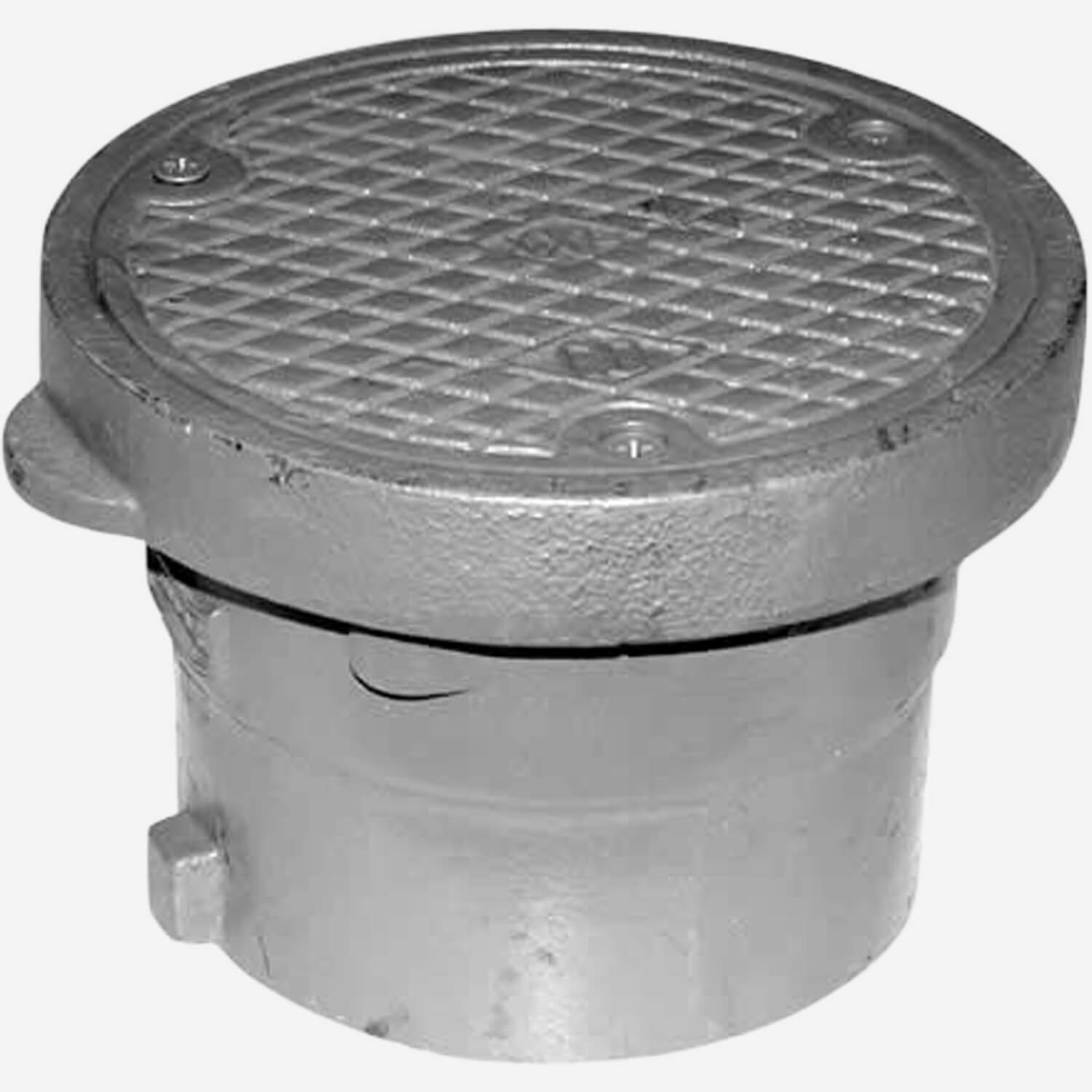 Our heavy duty 6-1/4" and 8-1/4" floor cleanout top assemblies are constructed of cast iron and designed to fit over 2"-4", 6" cast iron service weight or or extra heavy pipe with hub or 2"-4" and 6" PVC pipe with a mechanical coupling. They are delivered with round scoriated cast iron tops.