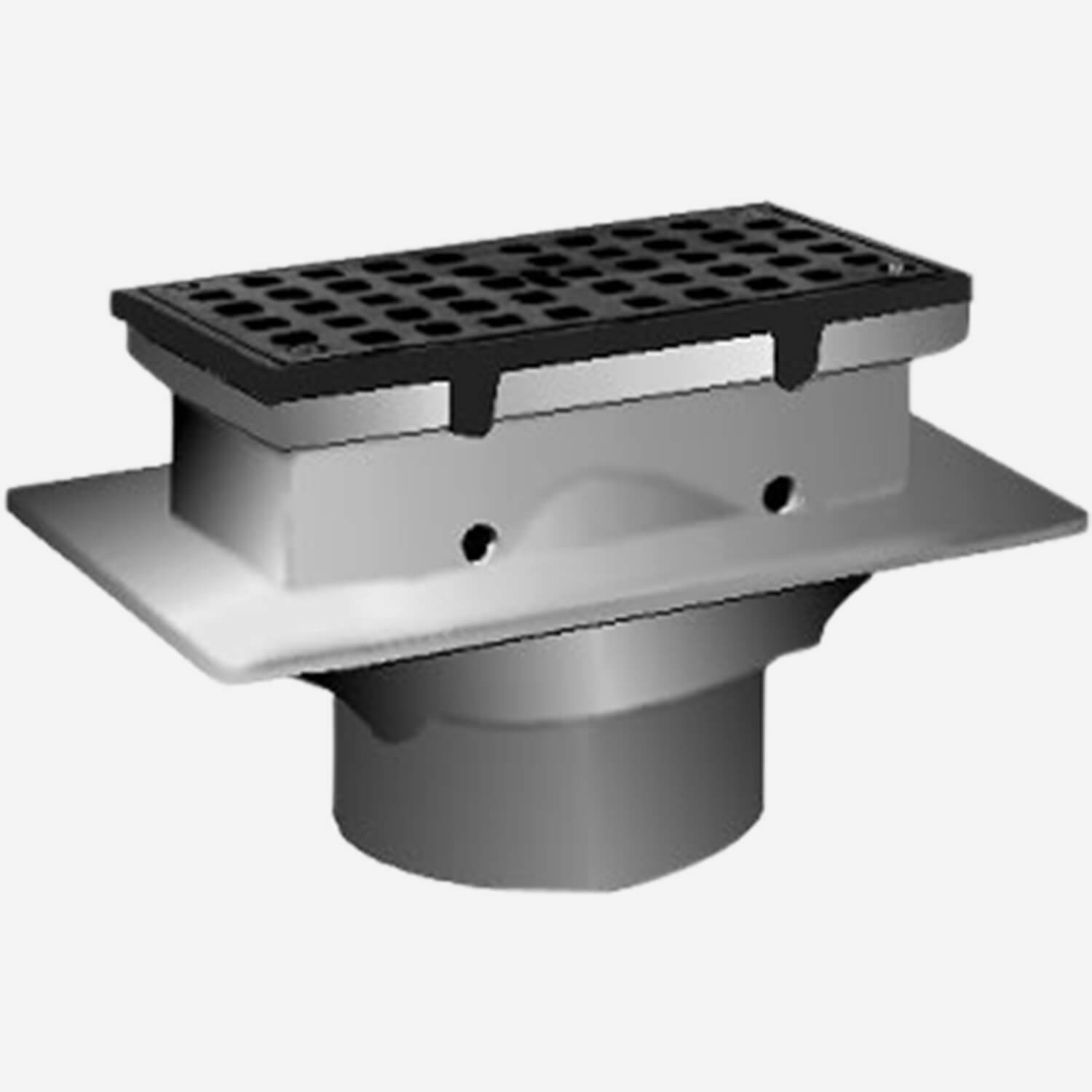 Sani-Ceptor® Acid-Resistant Coated Floor & Indirect Waste Drains - 4 x 8" Rectangular Top - Shallow Receptors [With Dome Bottom Strainer 3300C | Caulk Outlet; 3300Y | No-Hub Outlet; With Sediment Bucket 3301C | Caulk Outlet; 3301Y | No-Hub Outlet]066 KB