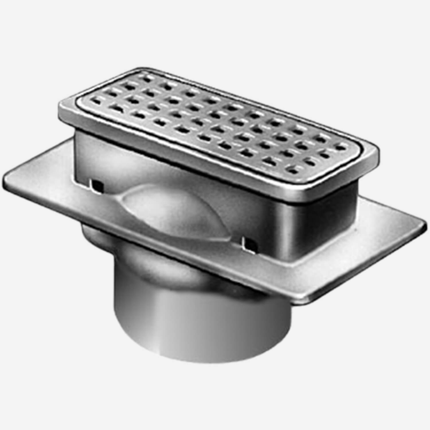 Engineered for long service life in food handling facilities, schools, and hospitals away from foot or other traffic, the shallow 4” by 8” top and deep 6” by 8” top Sani-Ceptor® cast iron floor drains are specially coated for acid resistance where the highest standard of sanitation is required. Designed to fit under counters and near walls, their drain bodies have an integral flange which accept an optional flashing clamp permitting installation in many construction types. Covered by loose set grates, these drains are available with aluminum dome strainers or sediment buckets to keep drain lines debris free.