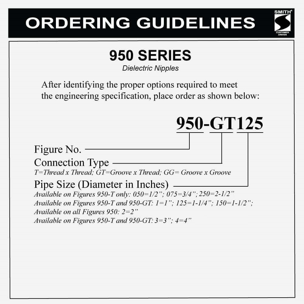| 1-1/4" | 4" (100 mm) | 950-GT125 | --- | 950-T125 |