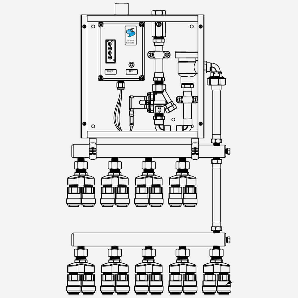- The assembly includes a steel NEMA Type 1 surface mount enclosed box, shut-off valve, solenoid valve, control box, atmospheric vacuum breaker and copper manifold.