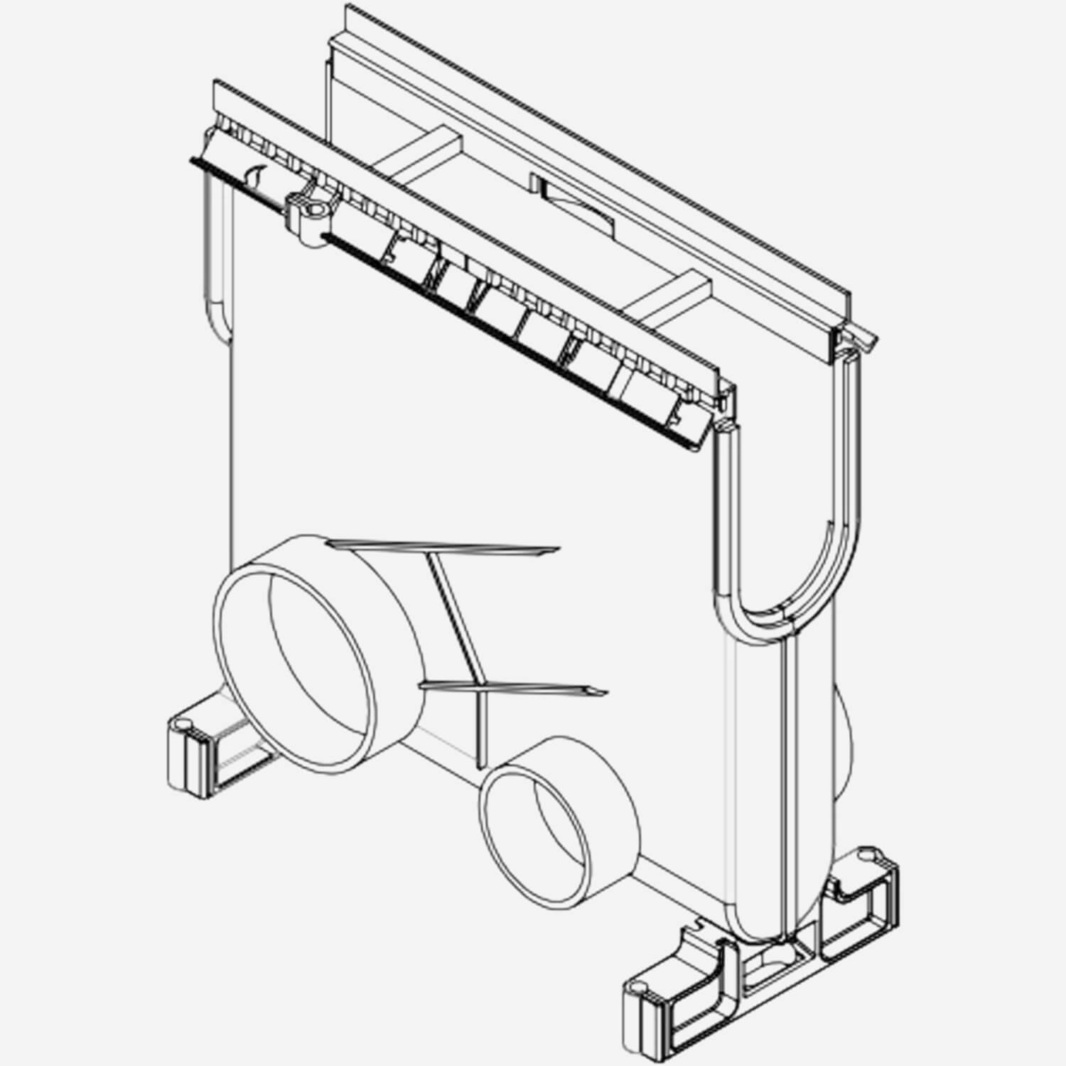The 9935 catch basin is designed with the 9930 6" wide Enviro-Flo II heavy duty trench drain. A trash bucket in plastic material is available for easy removal of debris.