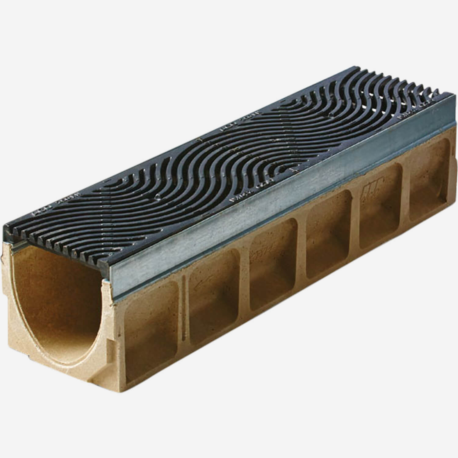10" Wide 'Pre-Sloped' Polymer Concrete Channel Drain with Integral Metal Rail - Klassikdrain®