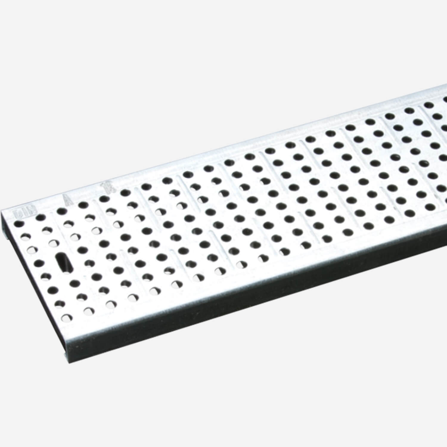 This heavy duty, perforated galvanized steel grate is compatible with Smith 9898 and 9896 polymer concrete trench drain systems. ideal for areas with commercial pneumatic tire traffic patterns, forklifts, and tractor trailers.