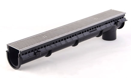 This polypropylene trench drain is ideal for use in ballparks, stadiums, chemical processing plants, food and beverage, breweries, swimming pools, driveways, kitchens, and greenhouses.