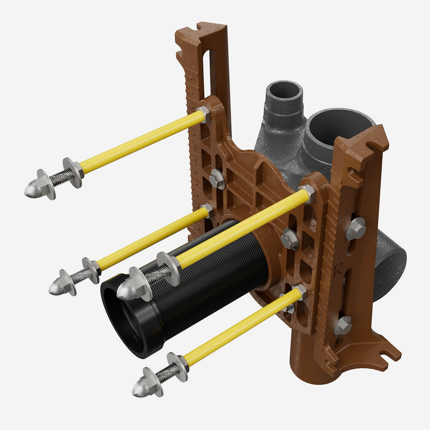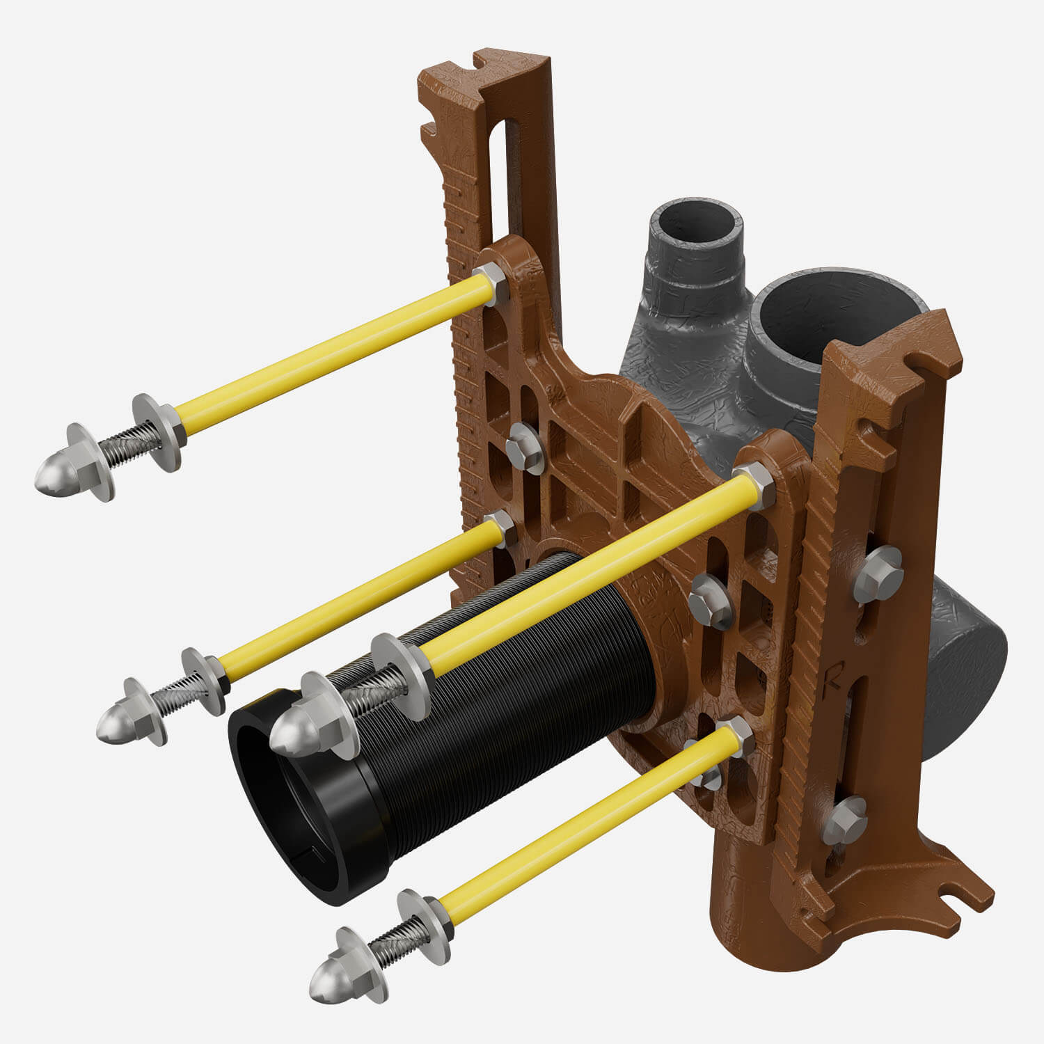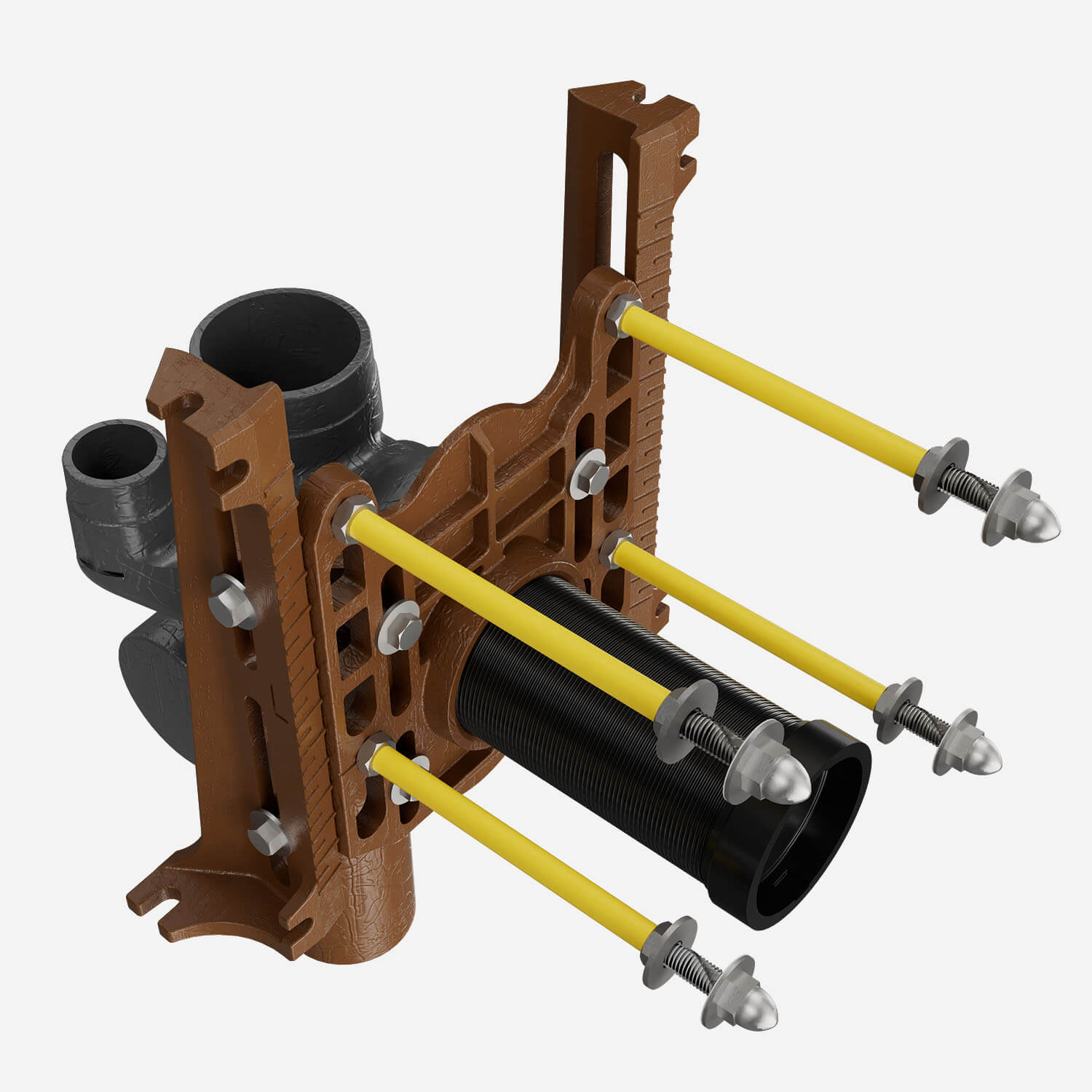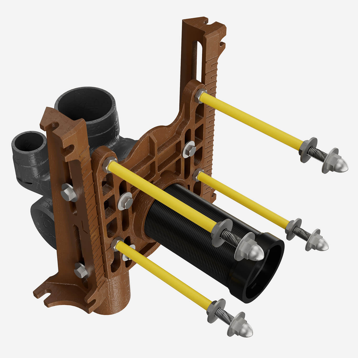Adjustable Fixture Supports for Siphon Jet Water Closet - Narrow Wall No-Hub Vertical Fitting - Two Side Inlets with Face Plate, Side Mounted Base Support Assembly, Adjustable Nipple, O-Ring [submittal]