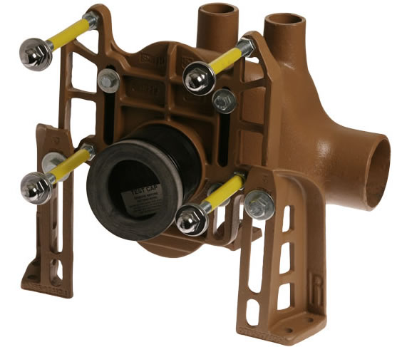 Adjustable Support for Siphon Jet Water Closets - Shallow Rough-in, No-Hub Horizonal Fittings with 2" Auxiliary No-Hub Inlet, Face Plate, Side Mounted Base Support Assembly