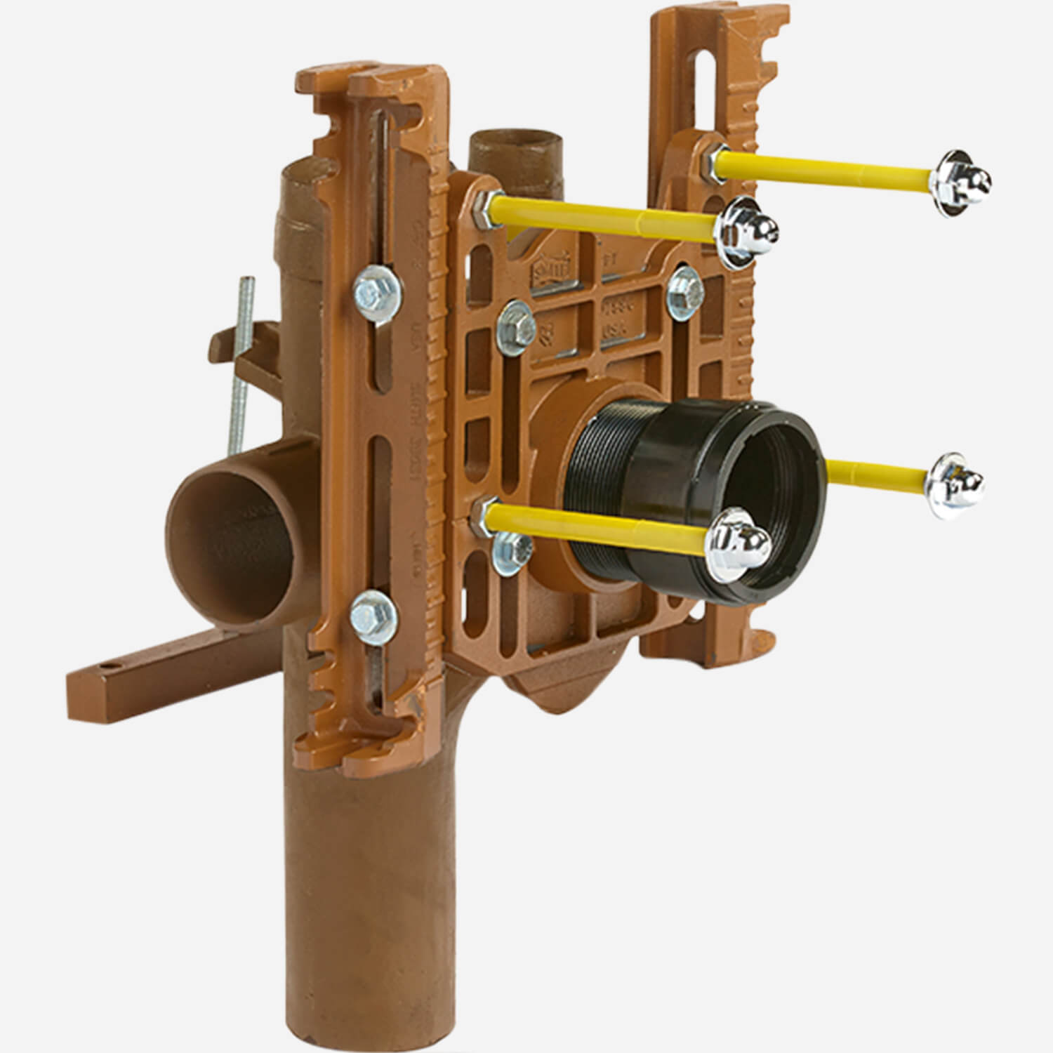 Adjustable Support for Siphon Jet Water Closet - Shallow Rough-in - No Hub Vertical Fittings with Two Side Inlets Extra Heavy Duty, Face Plate, Side Mounted Base Support Assembly <submittal>